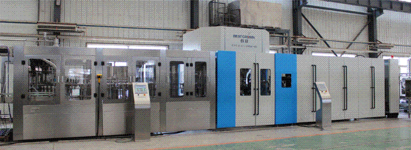 日前,湛江市椰湛飲料有限公司訂購的吹瓶/沖瓶/灌裝/旋蓋四合一體式機組,在廊坊百冠總裝車間順利完成了出廠測試,將于近日發貨客戶現場。該設備生產速度為20000瓶/小時,將用以灌裝“椰樹牌”天然泉水